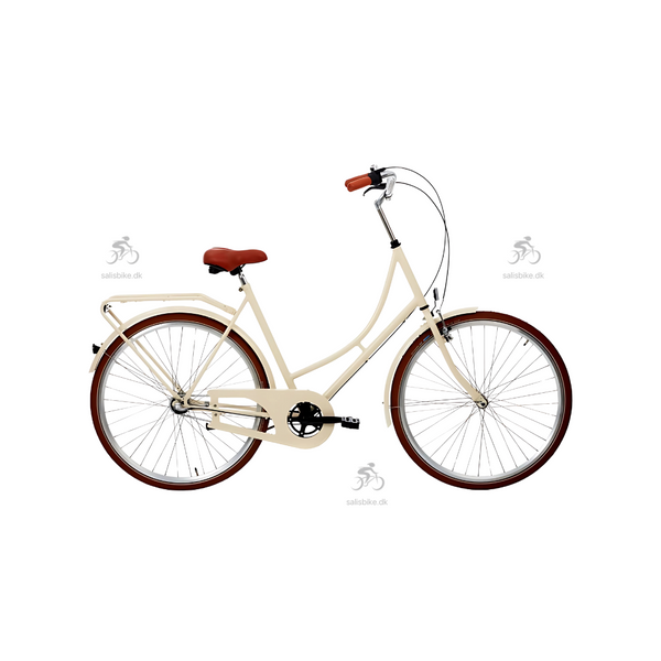 - Creme dæk, brun sadel og brunt håndtag (Creme)